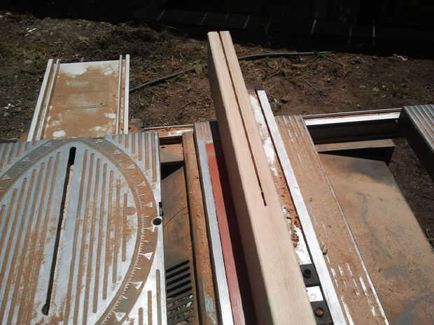 La Sierra de mesa altura fue ajustada para que coincida con la guía a la distancia del borde de la hoja exterior. Dos pases para seis 0,7" x0.7"x32"piezas retirarse aproximadamente un 0.5" x0.5 "pieza para formar piezas de 6" L ".