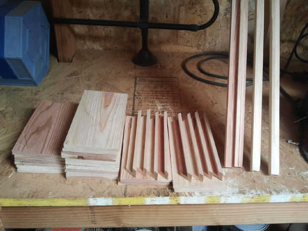 Diez piezas de la anchura de dos 2 x 4 (7") fueron cortar de 0.3" x3.5 "x40".