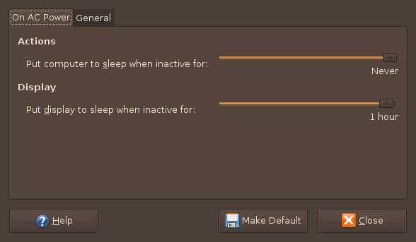 Ubuntu: Sistema -> Preferencias -> Administración de energía