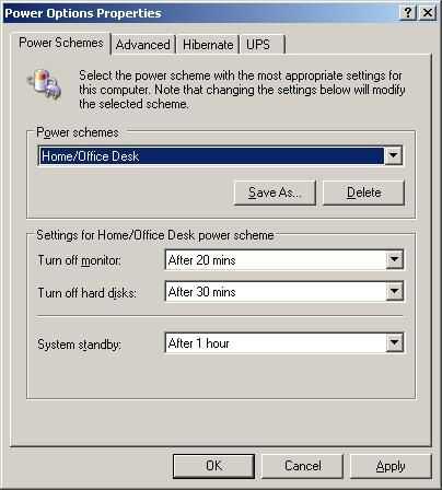 Usted puede activar un "protector de pantalla". Esto solo suele no hacer mucho, que evitar quemar CRT. Algunos protectores de pantalla gráficamente intensiva pueden usar más energía que una computadora de escritorio inactivo. Una pantalla en blanco sería mucho mejor. Mejor aún ser apagar al monitor. A veces usted puede especificar que los discos duros deben girar hacia abajo cuando ralentí también.