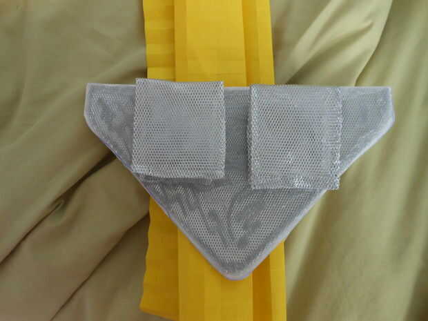A continuación usando la pistola de pegamento caliente, coloque la malla en la parte posterior de la correa y "inyectar" el pegamento caliente en la parte posterior. Esto tanto crear una buena adhesión con el pedazo de espuma y la malla de alambre y darle grosor extra.
