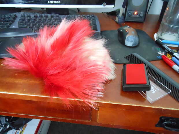 Por este tiempo se hacía muy cerca de Halloween y estaba quedando sin opciones. Pude conseguir una peluca de Guy Fieri, que coloreado con almohadillas de tinta roja. En general parecía agradable, pero el problema para mí era que tiendo a sudar. Usted vea que equipo Flare le gusta alisar su cabello hacia atrás, que significa exponer la línea del cabello de la peluca. Esta línea se puso en mi cabeza justo donde mi propia línea de pelo era, dando por resultado algunos de los pelos tocar mi pelo. Fui a una fiesta con la peluca y cuando que regresé mi frente se tiñó de rojo. Así que si haces este traje, mi sugerencia es ir con el pelo normal, peluca roja que ya está rojo, o teñir su pelo.