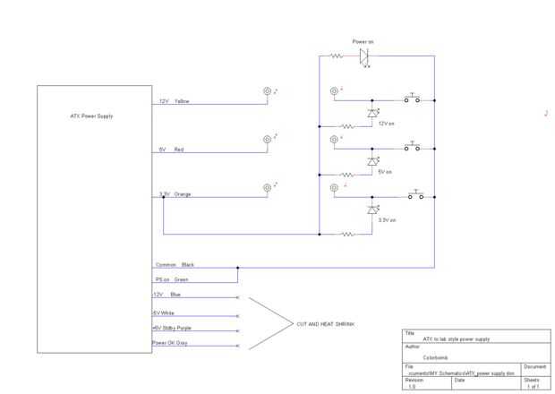 Aquí es el esquema para este proyecto. Tomaré fotos del interior de la fuente de alimentación más adelante. Como dije que este es un proyecto sencillo muy simple. Si te quedas atascado, hay muchos tutoriales sobre cómo convertir una fuente de alimentación ATX.