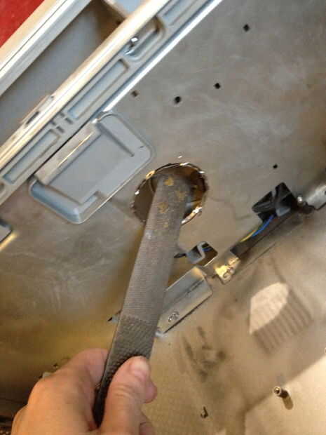 Cuando había desmontado el equipo que había dejado la parte superior "estante" porque sin él no cerrará el lado. Esto vino en práctico porque todo lo que necesitaba era hacer agujeros en ella, apenas el tamaño correcto para mi LED bombillas brillar abajo y iluminar las plantas de semillero más abajo.