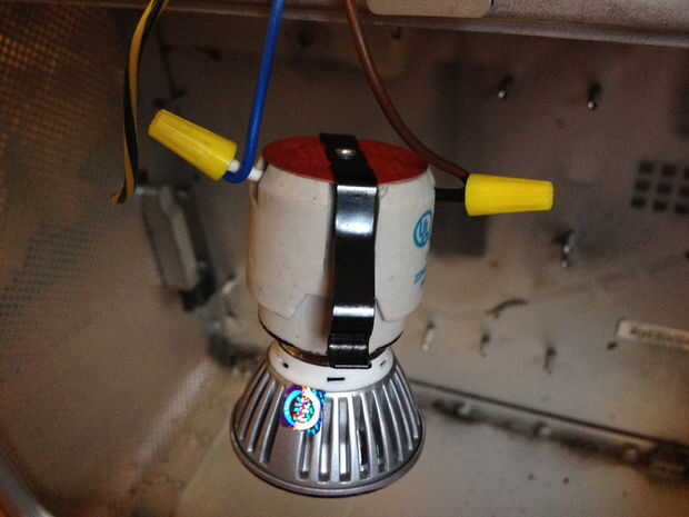 Acabé de poner tres bulbos de 3 vatios en allí, 2 azules y uno rojo. Primero he marcado los puntos de corte. Dibujó y cortan un círculo ligeramente más pequeño que el diámetro de las luces LED Par que había comprado, por lo que sólo podían descansar en la parte superior. Me corte los orificios con mi herramienta dremel y luego presentó los bordes para eliminar las rebabas y evitar que corte. Alambré algunos zócalos viejos que tenía por ahí con un cable de sobra que yo colgado de uno de la parte posterior de la computadora. Si no tienes nada de esto alrededor, dar un paseo por el día de recolección de basura en lugar de comprar nuevos. Los vertederos son obstrucción tantas piezas perfectamente bien, ni siquiera es gracioso.