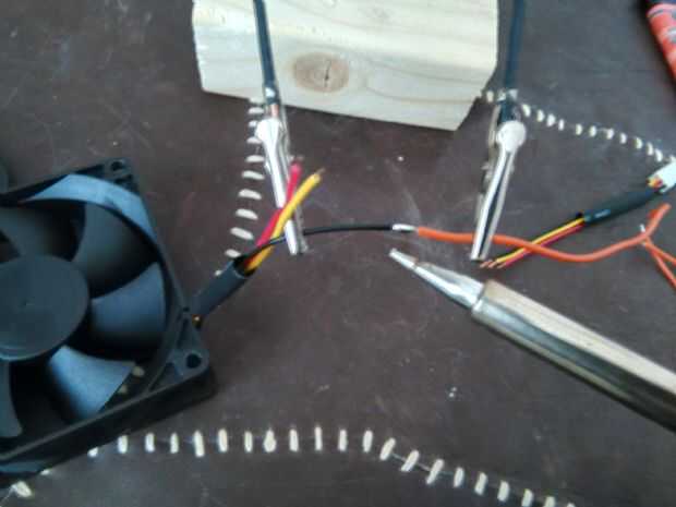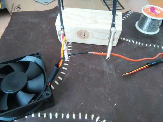Poner el tubo en un extremo del cable del encogimiento del calor. Entonces ambas piezas en ayudar a las manos. Sólo puede alinear el cable al lado del otro pero prefiero plasmarla en pequeños ganchos si sé que yo no se para desoldarlo. Calentar los cables con el soldador y poner suficiente soldadura para que forma alrededor del alambre todo expuesto en forma de lágrima. Lamentablemente mi cámara zoom en el lugar equivocado para que parte de la imagen es un poco borrosa.