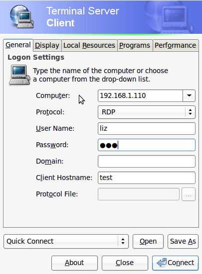 En este caso la dirección ip es addr:192.168.1.110 inet. Desde aquí cuando configure el cliente rdp en su cliente. (Consulte el manual de cliente delgado para los detalles). Puede utilizar esta dirección como anfitrión. Entonces fuego a tus clientes y van al software de cliente de terminal server y entrar en los datos. y conectar. Usted tiene que hacer este paso con cada cliente.