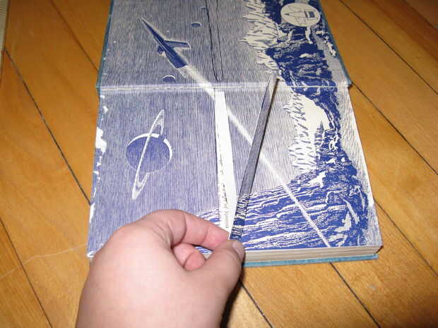 De vez en cuando, poner la aguja en el y cerrar el libro para comprobar. Puede dejar de cortar cuando el libro se cierra completamente y la profundidad es lo que quieres que sea.