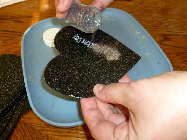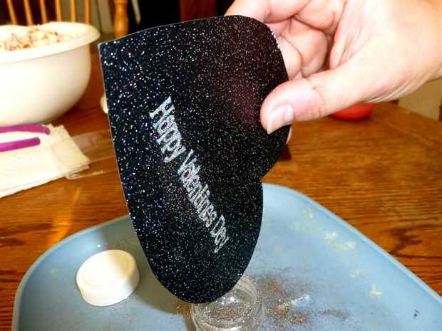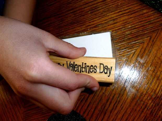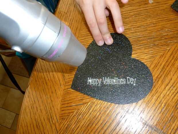 Sostenga la herramienta de calentamiento sobre el mismo punto para una cuenta de 5-10 asegura que el polvo se consigue calienta bien en el área que se pretende. Trabajando junto a mis 8 años, tardamos aproximadamente una hora para estampar y relieve a todos treinta San Valentín.