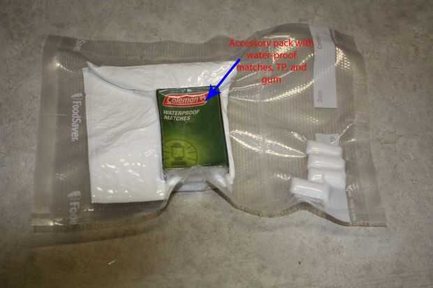 En el otro bolso de compartimiento de 6 pulgadas 2 coloqué 4 piezas de goma de mascar (fruta jugosa), TP, y una caja de prueba de agua coincide con y luego hermetizado.