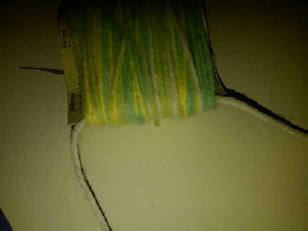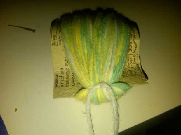 Cuando hilado/tarjeta/aburrido/completar, parada de la bobina y corte el hilo. Corte otro pedazo de hilo de unos 20 cm de largo. Deslice esta por debajo del hilo cuidadosamente envuelto y atar en la parte superior de la tarjeta, lo mas ajustado posible. Asegúrese de que no va a salir, y luego o bien dejar los extremos perder, recortar corto o como lo hice, atar en un arco... Corte el extremo opuesto del hilo abrigo abierto.