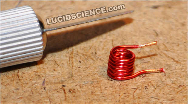Algunos hilos de esmalte cubierto 1mm alrededor de un pequeño tornillo de máquina de viento 5 veces y raspar el esmalte de los extremos.