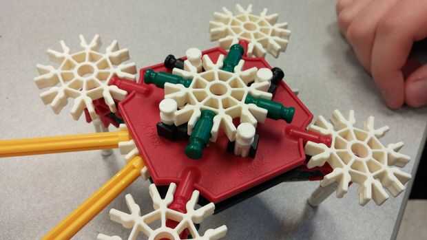Lo único por hacer es tomar una pieza octogonal y colocar cuatro barras verdes, por lo que enfrenta uno al otro como 12, 6, 9 y 3 en el reloj. Coloque esta pieza por pegarse en la parte superior el fallo entre las barras blancas que. La pieza probablemente surja, si sólo mantener empujándolo hacia abajo hasta que lleva a cabo.