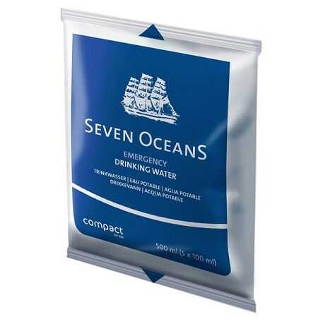 Agua de los océanos siete raciones500 ml de agua de emergencia por la caja, 3 cajas, en un impulso con el agua arriba y esto voy 3 días pero que voy a llegar a suministro de agua antes de entonces.