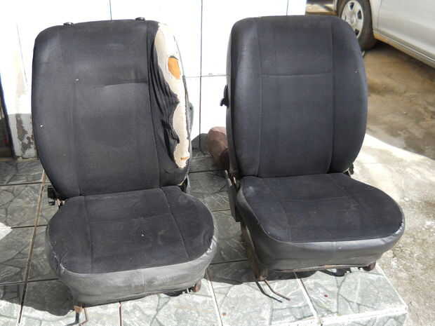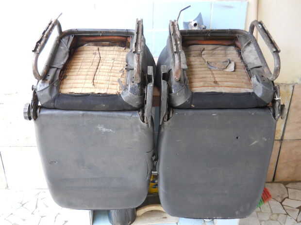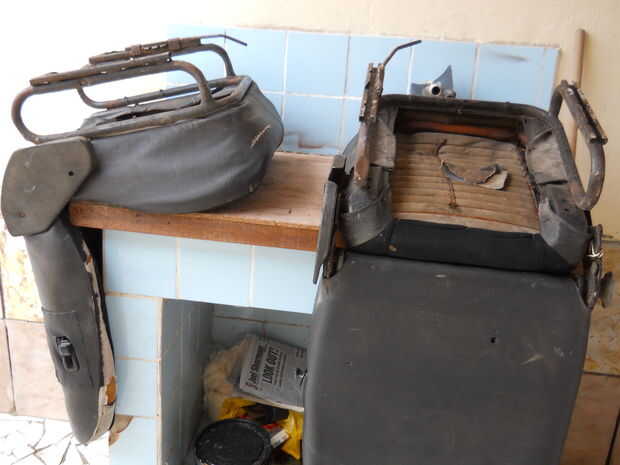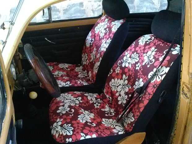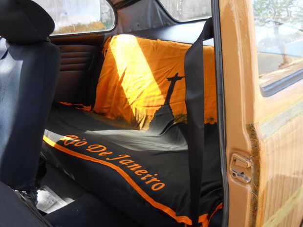 Los asientos en este coche, frente y atrás estaban sucios, pero estructuralmente. Así que quité todo, limpiado (realmente lavados les), lijado de la oxidación de los marcos de metal y cubierto con fundas de asiento nuevas. En la parte delantera he usado un par de hawaianas imprimirlos cubiertas que compré barato en una tienda en el bulevar de las reinas, y en el asiento trasero he añadido un pareo brasileño de sabor local. También pintó las piezas de plástico a los lados, utilizando una técnica que he documentado en mi Instructable "Metal pintura para madera." El resultado final es algunos asientos bastante cómodos y de buenas aspecto que enorgullecería cualquier vago de surf ;-)