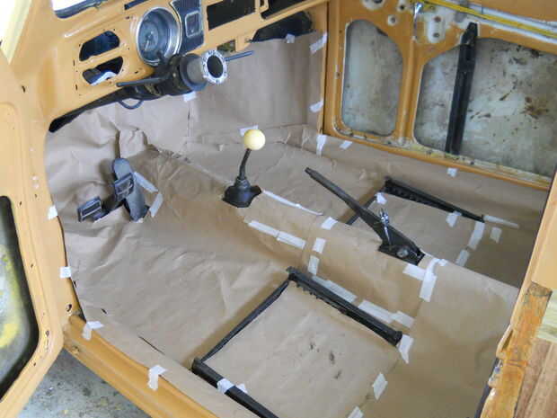 Comprobar en línea para juegos de alfombras, pero decidió que eran demasiado caros y decidieron seguir con el método DIY. Encontré una muy útil guía online de alfombras un viejo escarabajo de VW aquí. También encontré un plano de alfombras realmente útil en alguna parte otro en línea.