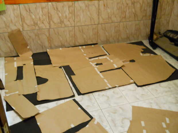 Desde aquí, todo el crédito por el trabajo duro va a mi esposa: primero ella puso hacia fuera el papel del arte, corte y grabado a través hacia fuera de la planta del coche. Usando los pedazos de papel como guía la plantilla ella puso hacia fuera en la alfombra y cortado a la medida. Entonces ella había pegado toda la alfombra en su lugar con pegamento de alfombra resistente.