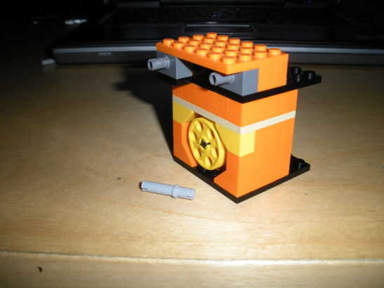 4. >>> después de obtener las bombas, haré añadir este paso. Canal de los dos tubos de las bombas a través de los dos agujeros en el ladrillo de 1 x 2 y 1 agujero a través de cada uno de los ladrillos de 1 x 2 con un agujero.