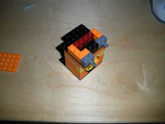 5. Coloque una placa de 4 x 6 por encima de los ladrillos de 1 x 2 con agujeros, los ladrillos de tres 1 x 2 y los ladrillos de 2 x 1 con pasadores de extrudado.