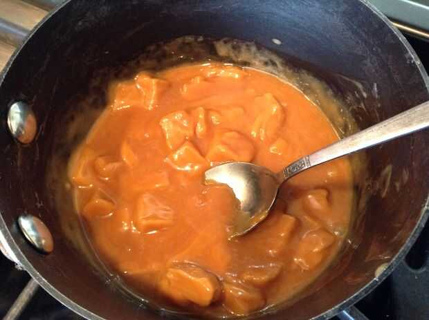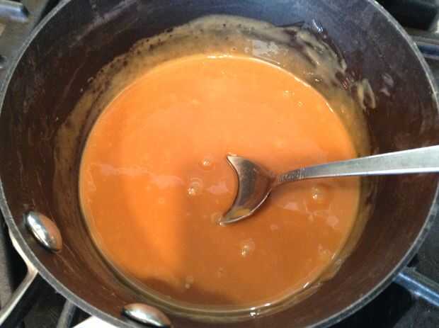 mantener revolviendo caramelo hasta que el caramelo se ha derretido y tiene textura suave.