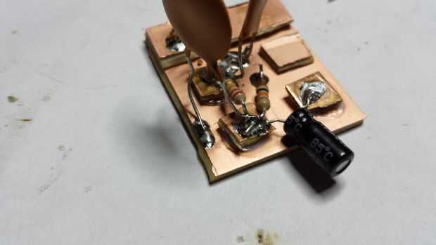 Ahora vamos a añadir otros 0.01 uF cerámico disco condensador. Un cable irá en la placa 4 y el otro irá a la tierra, encontré un lugar pequeño y agradable en el borde de la placa de tierra para esto.