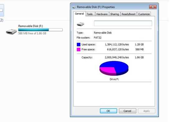 Un día había un mensaje de error.  La unidad estaba lleno.  Ha hecho clic en "Propiedades", pero había todavía bastante espacio libre restante.