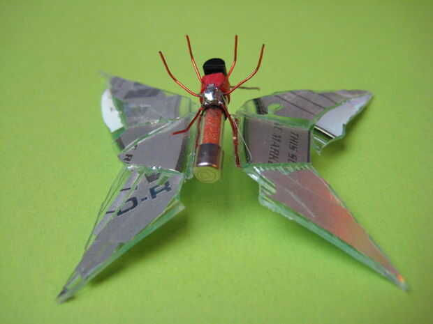7. trozo pegue una de alambre a cada ala, haciendo posible la soldadura lo más tarde al cuerpo.