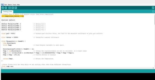 Ahora tienes que probar usando su computadora y el monitor serie del arduino entorno de programación. Asegúrese de que todo está cableado correctamente y luego conectar tu arduino a tu ordenador. Desde aquí se desea abrir el archivo de arduino llamado "Testing_Code". En este programa se desea cambiar una variable en la parte superior. Cambie el valor de la variable "temperature_wanted" a 5-10 grados por debajo de lo que el termostato se encuentra en. Ahora sube el código y abrir al monitor serie. Los termistores toman la temperatura cada cinco segundos aproximadamente. Entonces después de cinco minutos o el led verde (que representa por encima de la temperatura deseada) se enciende o el led rojo (representando por debajo de la temperatura deseada) se encenderá. Esto demostraría si son fugas aire frío a su hogar desde una ventana, puerta, etc..