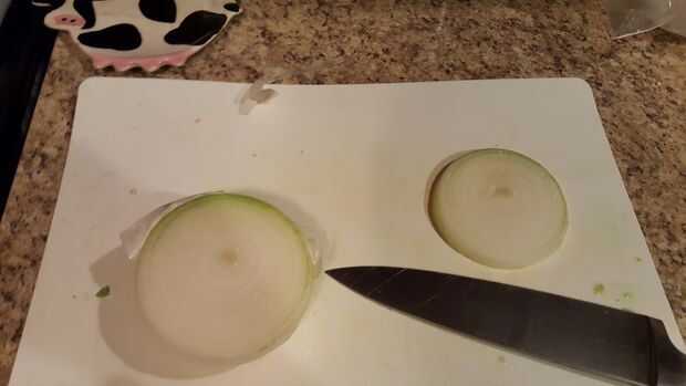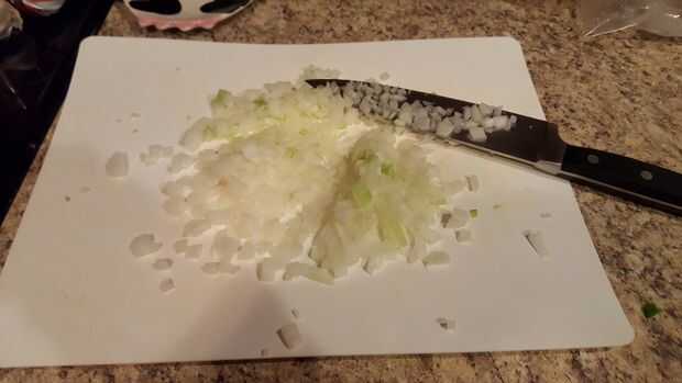 Romper esa cebolla y hacer con el picar. Utilizar 1/2 y cebolla en mi Chile pero, nunca vas a creer esto, usted puede utilizar tan poco o tanto como usted desea! Chile se hace a gusto!