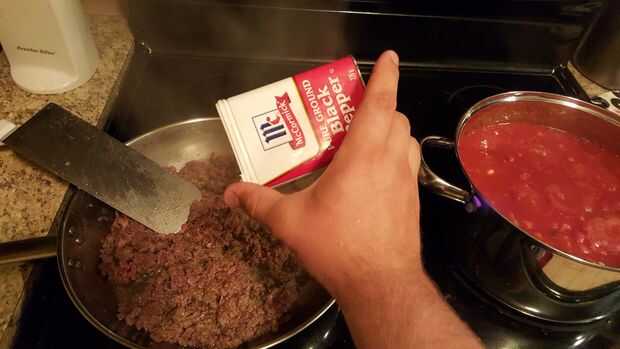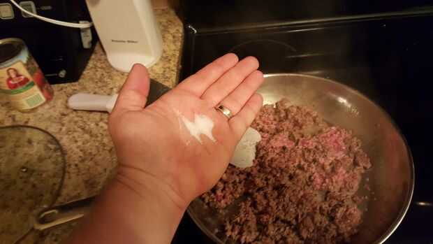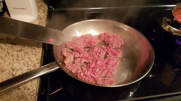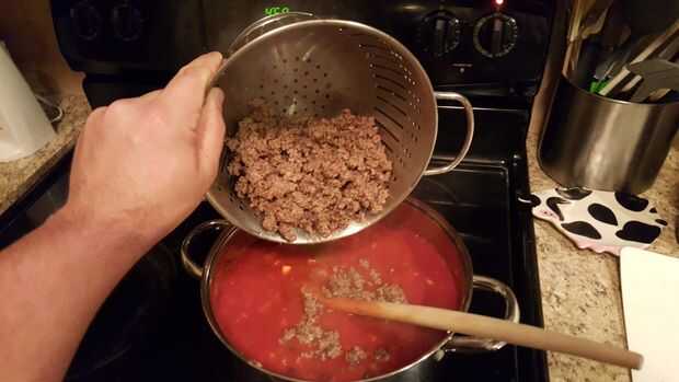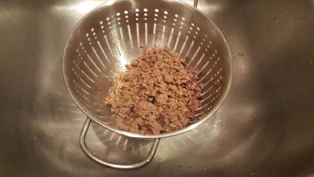 Si la carne parece un poco grasa verter en un colador y dejar escurrir por unos entonces añadirlo a la olla!