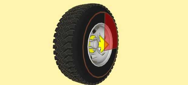 Ahora necesitamos crear un desplazamiento de apoyo, por razones que serán evidentes por debajo. Poner algo plano a través de su neumático, como un tablero. En la imagen he utilizado un avión rojo translúcido y una flecha amarilla. Estas son para la ilustración solamente y no parte del proceso de fabricación. Mida la distancia entre el HVP original (amarillo) y la Junta (rojo translúcido). Añadir 1" a esta longitud y llamaremos su"medición de la distancia de desvío total"o"TODM".