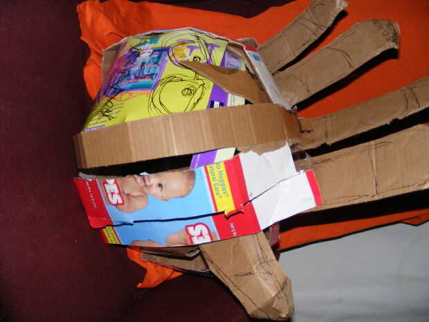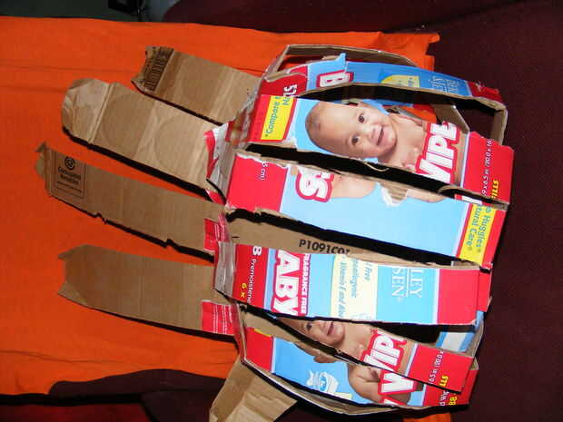 Huecos entre las tiras forman crestas con sangría para simular una calabaza real cuando es piel excedente con papel maché.