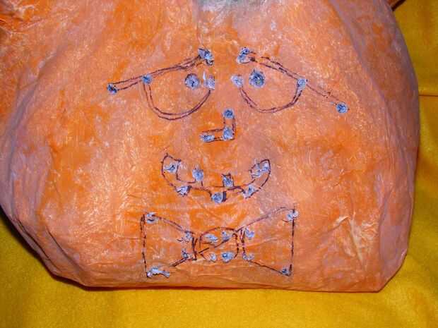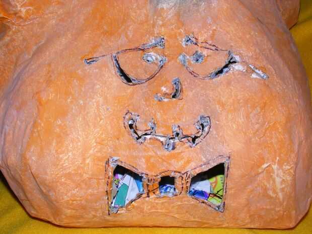 Tallar al igual que un jack-o-linterna tradicional. Usé pintura para destacar las aberturas.