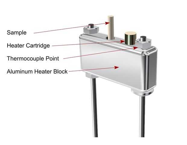 El alambre trenzado se conecta debajo de la tuerca al lado del cartucho calentador. Esto medirá la temperatura de la muestra.