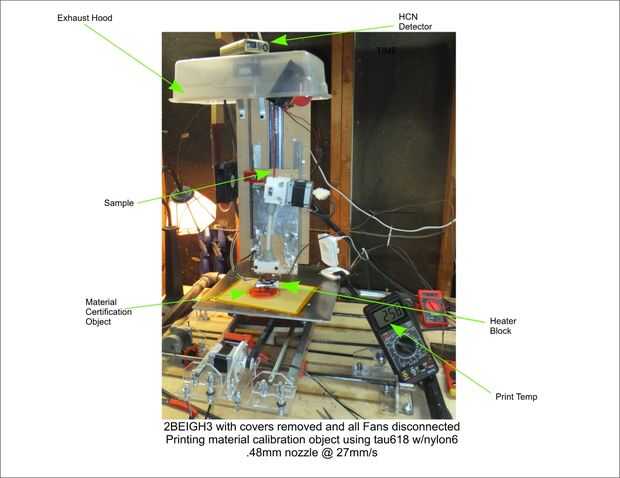 En este caso, un recipiente grande de plástico se utilizó como una capilla temporal para recoger gases aumentando durante la impresión. Hay un agujero de 1.5" de diámetro en la parte superior para gases de escape, y como lo pasan directamente a través de la ruta de acceso del módulo sensor.