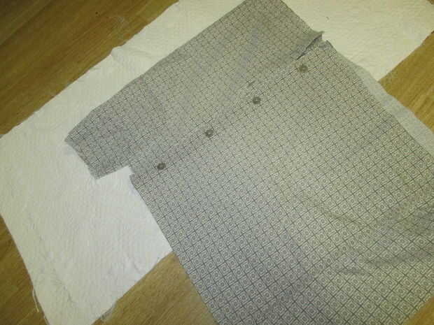 Encontré un gran rectángulo de acolchados de la tela crema y una camisa para hombre con una impresión agradable, aspecto de armadura. También pensé que quizás el encierro del botón de la camisa puede ser una característica para el organizador, pero vamos a ver.