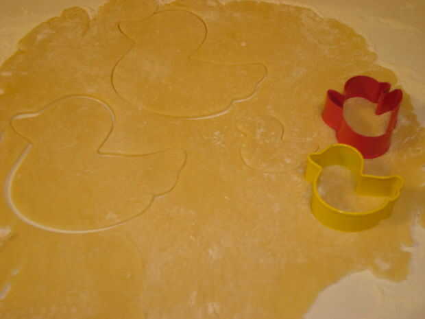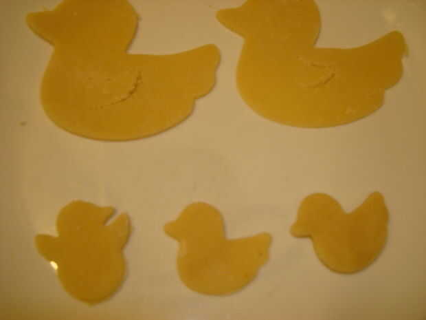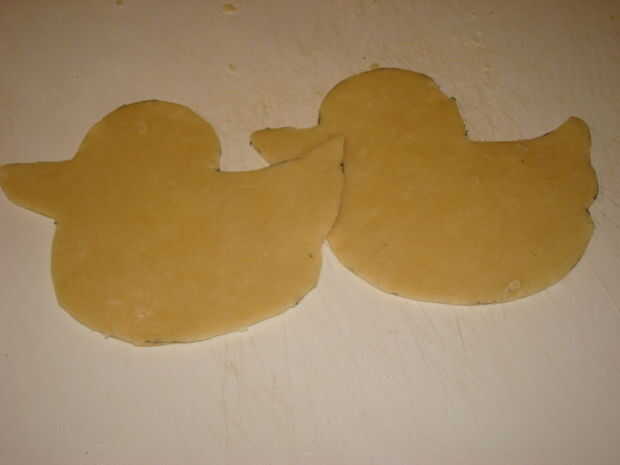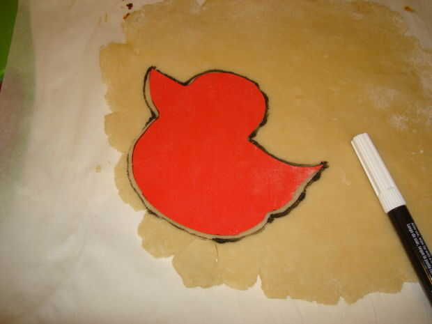 Recortar las formas. (He encontrado las formas de pollo funcionadas mejor si las tapas eran ligeramente más gruesas que usted normalmente haría.