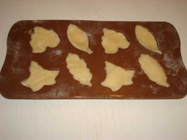 Después de que las formas fueron cortadas Coloqué las formas sobre una placa enharinada y ponerlos en el congelador hasta que endureció.