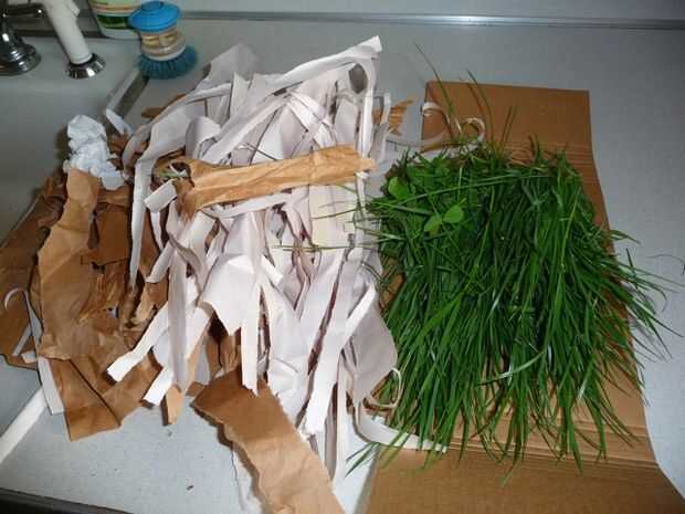 Romper periódico o cualquier tipo de producto de papel que normalmente reciclas. Estos productos de papel hará que la ropa de cama para las lombrices y deben ser alrededor 2" profundos y no compactada abajo. Asegúrese de que la ropa de cama mullida para arriba y tiene un montón de bolsas de aire para los gusanos para moverse.