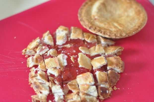 En un recipiente grande combinar 1 pinta (16 onzas) vale la pena suavizada un poco de helado de vainilla con 2 (4 pulgadas) cereza empanadas picadas en trozos pequeños. Use una espátula para doblar las piezas de pastel en el helado, trabajando rápidamente para evitar un lío melty gigante. Una vez el pastel y helado de vainilla se han combinado bien, suavemente doblar en los símbolos pequeños pi y transferir toda la mezcla en la tartera preparada, con su espátula para difundir y distribuir el relleno así que la superficie es lisa. Sacar el hilo piezas de chocolate del refrigerador y utilizando el patrón como guía en la parte superior de la tarta. Congelar durante al menos una hora hasta la noche para reafirmar la tarta antes de cortar y servir. ¡ Disfrute!