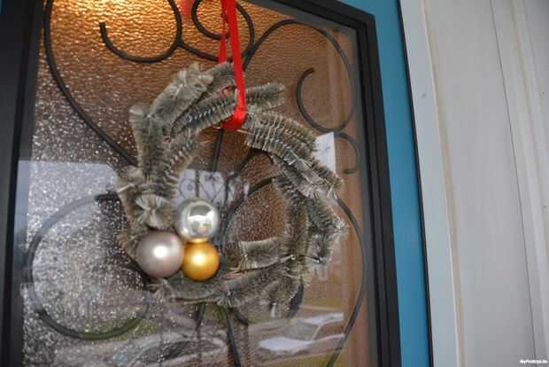 Estoy super feliz con mi corona de vacaciones cepillo de tubo y se ve muy bien en nuestra puerta!