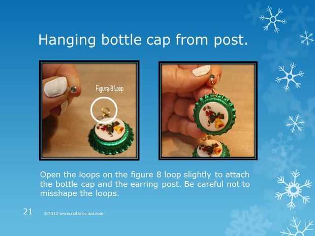 Suavemente abrir el lazo del lazo de alambre de la figura 8 y coloque el tapón de la botella. Luego conecte el otro lazo al post pendiente.