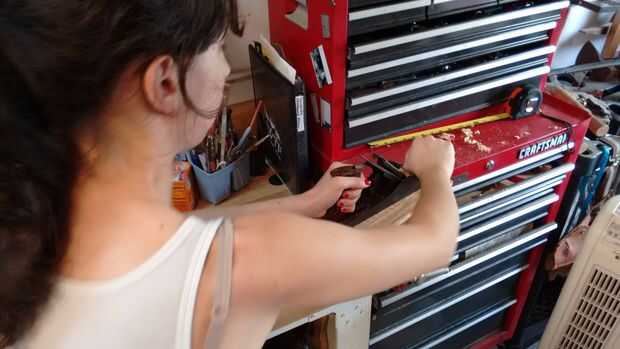 Cepillar y lijar nuestros dos listones pequeños para que sean bonitas y limpias y lisas. Este es el momento para perforar los agujeros, también, si te cuelga con cuerda o cuero, o para fijar soportes de marco de foto si va mostrando de esa manera.