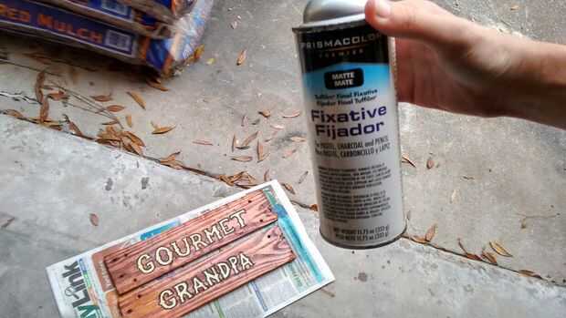 Cuando esté seco, puede barniz o en caso contrario sellar la obra acabada en su madera. Puesto que este signo se mantendrá en el interior, utilizamos sólo una fina capa de fijador transparente como un escudo protector. Si la muestra está diseñada para uso al aire libre, proteger por consiguiente.