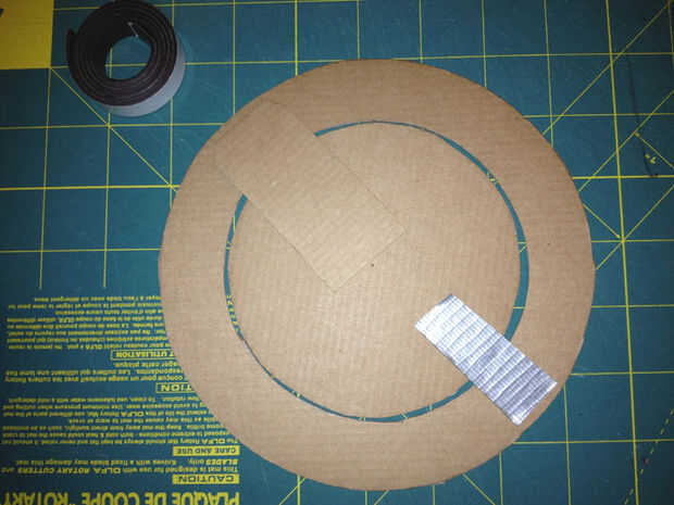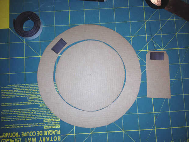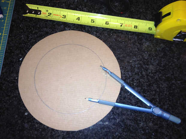 Empezar midiendo el bote o cualquier otro contenedor que utilizas. En mi caso fue cerca de 7 1/2 pulgadas de ancho, así que agarré mi brújula y había marcado un círculo en mi cartulina ligeramente más pequeña que para que las monedas serían cubrir los bordes. Me corte el círculo con la tijera y había marcado otro círculo en su interior por la puerta de la trampa. Corté el círculo utilizando el cuchillo de la manía y recortado con las tijeras para que tuvieran espacio para abrir fácilmente. Cortar una pestaña cierre magnético para la puerta de la trampa y añadir dos pequeños trozos de la cinta magnética (sobre y de la pulgada) como se muestra en la ficha y el otro en el anillo exterior de cartón. He añadido un pequeño trozo de cinta de la bisagra, aunque me pareció más fácil pegar en todas mis monedas en la cartulina cuando las piezas ere separaron, pues quitaron y había substituido más adelante.