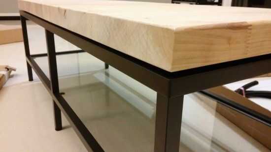 Sólo voltee este conjunto de top + estante laminado de abedul y coloque nuevamente en la parte superior el marco VITTSJO. El estante laminado debe adaptarse en perfectamente, la tapa de abedul en lugar de ' bloqueo'. También crea un encantador detalle 'flotante vacío' entre el marco VITTSJO y la tapa de abedul.