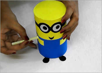Ahora corte una sonrisa de papel negro pequeño y pegue en la hucha de súbdito.