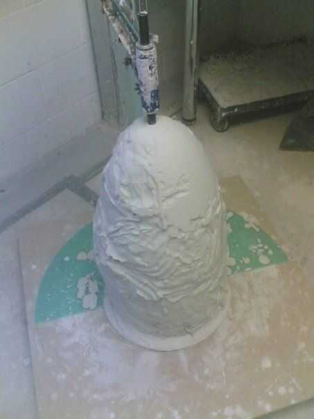 ¡ Mezcla una taza de yeso y comenzó a abofetear en! Cuando sea necesario hizo girar la espátula alrededor del cuerpo para asegurarse de que el yeso fue la creación de la forma correcta. Lo hice en etapas para que el yeso tenía tiempo de asentarse y limpie el ex regularmente si no reunían el yeso por debajo de la broca que gira y esto movería a la posición incorrecta.