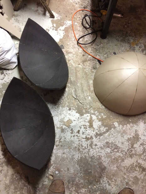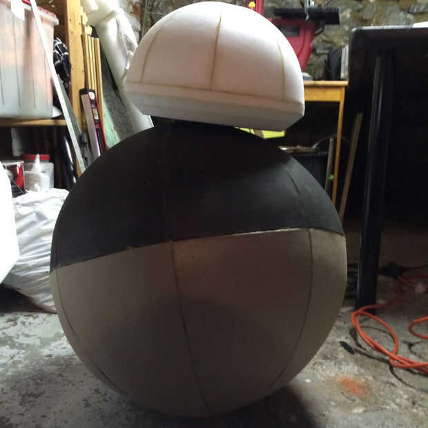 Para crear el cuerpo, construí la esfera 20" usando la espuma de EVA. 8 cuñas fueron hechos para crear cada mitad de la esfera. Las cuñas se calientan usando una pistola de calor y ligeramente curvada para conseguir la forma adecuada.