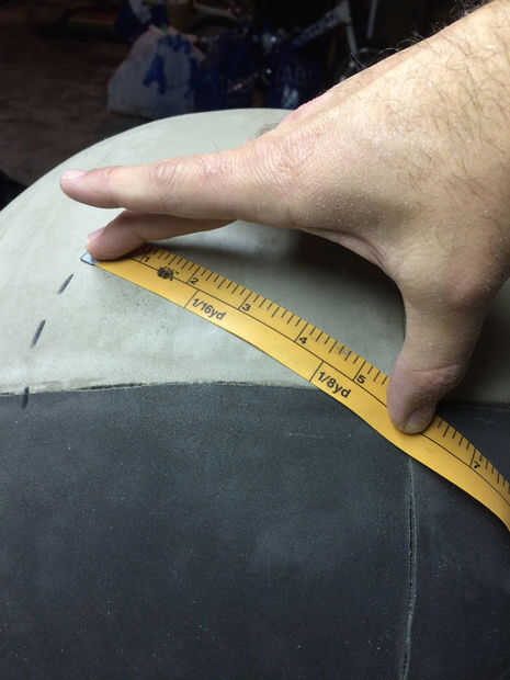 Trazar un círculo en una esfera absolutamente no funciona. El círculo se distorsiona y se pierden parte de su circunferencia. En su lugar, he creado cada círculo usando una cinta métrica y un rotulador. Mirando desde el centro y marcar de 1/2 el diámetro como gire la cinta métrica.